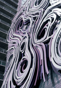 A series of layered aluminum ribbons interact with a field of points located throughout this exterior wall, creating a collection of interconnected nodes, hubs and conduits. The resulting composition is expressive of gestalt principles, or the human compulsion to find order in disorder by perceiving a series of individual elements as a whole. Named after the prehistoric supercontinent of Pangaea, this large-scale artwork is a collection of autonomous ‘islands’ that assemble into a singular, 3-story composition.